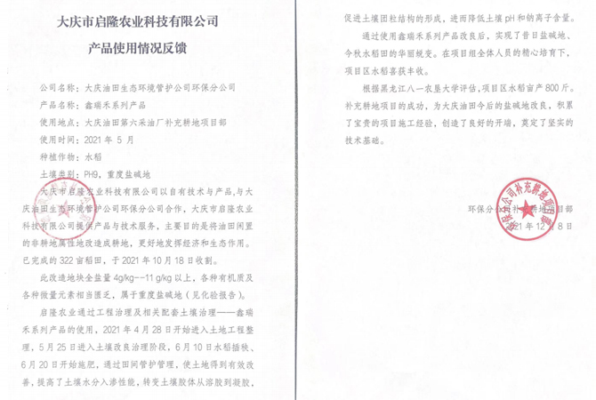 客戶(hù)名稱(chēng):鹽堿地改良初獲成功