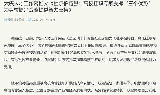 客戶(hù)名稱(chēng):大慶人才工作網(wǎng)推文《杜爾伯特縣
