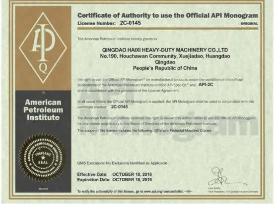 千錘百煉出精品。作為專(zhuān)業(yè)的海工平臺集成建造商,此次我司海上基座式起重機API-2C產(chǎn)品許可證書(shū)的成功取得,不僅是對公司質(zhì)量管理體系的高度肯定,也是公司管理水平穩步提升的有效證明,為海西重機積極響應國家“一帶一路”建設,加快實(shí)施“走出去”戰略,增強市場(chǎng)競爭力提供了有利條件。