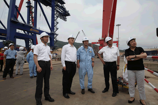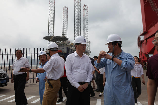楊軍一行參觀(guān)了海西重機港口設備總裝現場(chǎng),并重點(diǎn)參觀(guān)了在建的阿聯(lián)酋110米桁架自升式海工平臺,聽(tīng)取了海西重機董事長(cháng)鄧振山對公司目前生產(chǎn)經(jīng)營(yíng)形勢、生產(chǎn)負荷情況等方面的介紹,對海西重機在國際海工平臺市場(chǎng)上所取得的成績(jì)給予了肯定。