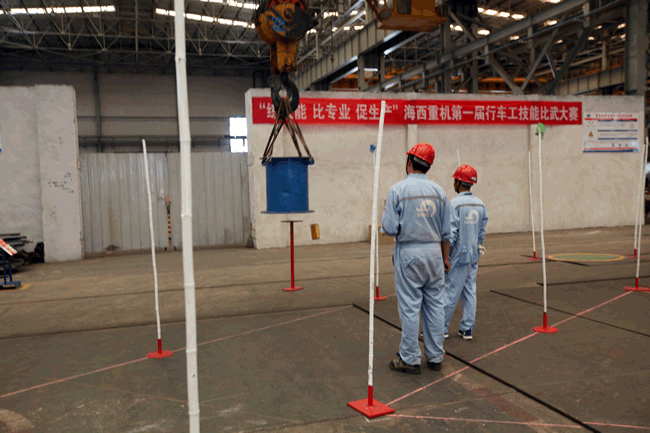 起重吊裝作業(yè)在公司諸多生產(chǎn)工藝環(huán)節當中,是使用頻率較高、危險性較高的作業(yè)工序,安全、平穩、準確、快速地吊裝作業(yè)是高效生產(chǎn)的關(guān)鍵因素。行車(chē)占公司起重吊裝設備超過(guò)70%,因此行車(chē)工為我司的重點(diǎn)生產(chǎn)崗位之一,其技能水平的高低,在很大程度上影響著(zhù)產(chǎn)品的生產(chǎn)節奏,甚至對公司整體上的生產(chǎn)節拍都會(huì )產(chǎn)生重大影響。公司一貫主張“不僅要有好的裝備,還要把裝備維護、保養好,更要把設備功用足用好”,在此背景下,為檢驗公司行車(chē)工的技能實(shí)力,提高行車(chē)工崗位意識和技能水平,促進(jìn)行車(chē)工自主學(xué)習、苦練技能,進(jìn)一步提升公司安全、高效的生產(chǎn)能力,由公司黨委主辦,工會(huì )承辦的行車(chē)工技能比武大賽應運而生。