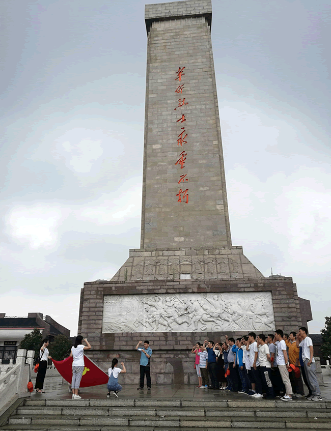 最后我們來(lái)到了刻有毛主席手書(shū)“革命烈士 永垂不朽”的革命烈士紀念碑下,懷著(zhù)敬畏之心,高舉右手,莊嚴宣誓。