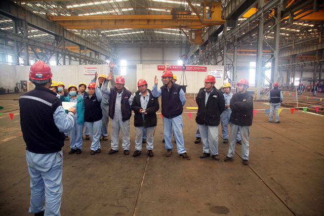 4月21日早上8點(diǎn),隨著(zhù)行車(chē)一聲?shū)Q笛,以“練技能 比專(zhuān)業(yè) 促生產(chǎn)——向武漢總部廠(chǎng)慶60周年獻禮”海西重機第二屆行車(chē)工技能比武大賽在下料車(chē)間正式開(kāi)始,來(lái)自全公司范圍內的28名行車(chē)工進(jìn)行了激烈地同臺競技,最終韓彩鳳、張愛(ài)軍、趙合躍等6名選手脫穎而出分獲一、二、三等獎,其中來(lái)自英杰鋼構公司的韓彩鳳蟬聯(lián)兩屆冠軍。海西重機黨委委員、副總經(jīng)理、工會(huì )主席代振華為獲勝者頒發(fā)了獲獎證書(shū)與獎品。