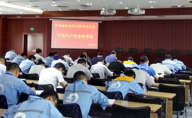 7月28日下午14點(diǎn),海西重機黨委組織公司正式黨員開(kāi)展黨章考試,海西重機黨委書(shū)記、董事長(cháng)鄧振山,黨委副書(shū)記、總經(jīng)理張懷志,黨委副書(shū)記、紀委書(shū)記朱聲凱,副總經(jīng)理、工會(huì )主席代振華參加了本次考試,共計120余名黨員參加了考試,預示著(zhù)海西重機黨委成功組織開(kāi)展逐字逐句學(xué)黨章活動(dòng)。