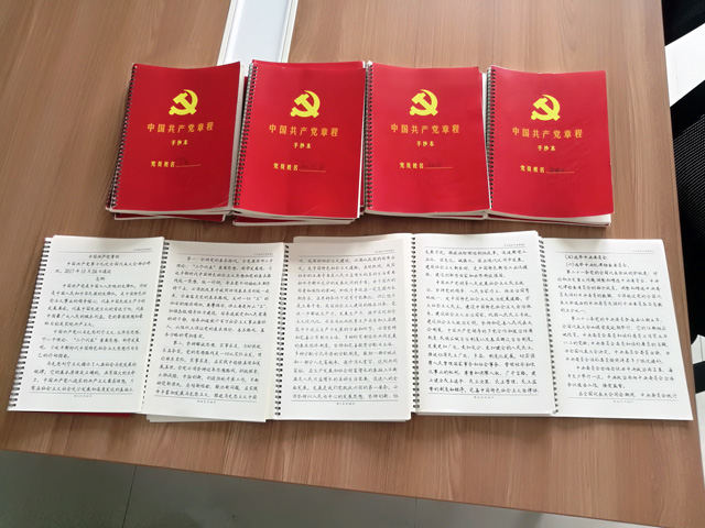 生產(chǎn)保障黨支部開(kāi)展黨章抄寫(xiě)活動(dòng)