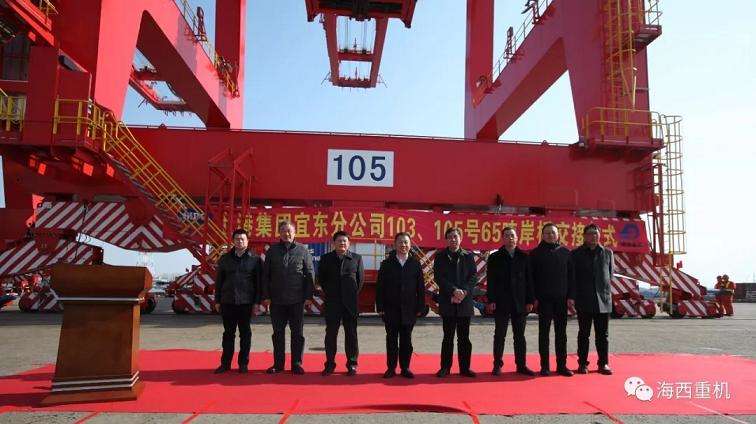 12月28日,由海西重機建造的2臺65噸岸橋交接暨列編儀式在上港集團宜東集裝箱碼頭分公司隆重舉行。上港集團宜東集裝箱碼頭分公司總經(jīng)理倪志平,黨委書(shū)記陳波,副總經(jīng)理廖勝前,黨委副書(shū)記、紀委書(shū)記、工會(huì )主席李軍,青島海西重機有限責任公司黨委副書(shū)記、總經(jīng)理張懷志,副總經(jīng)理代振華等出席儀式。
