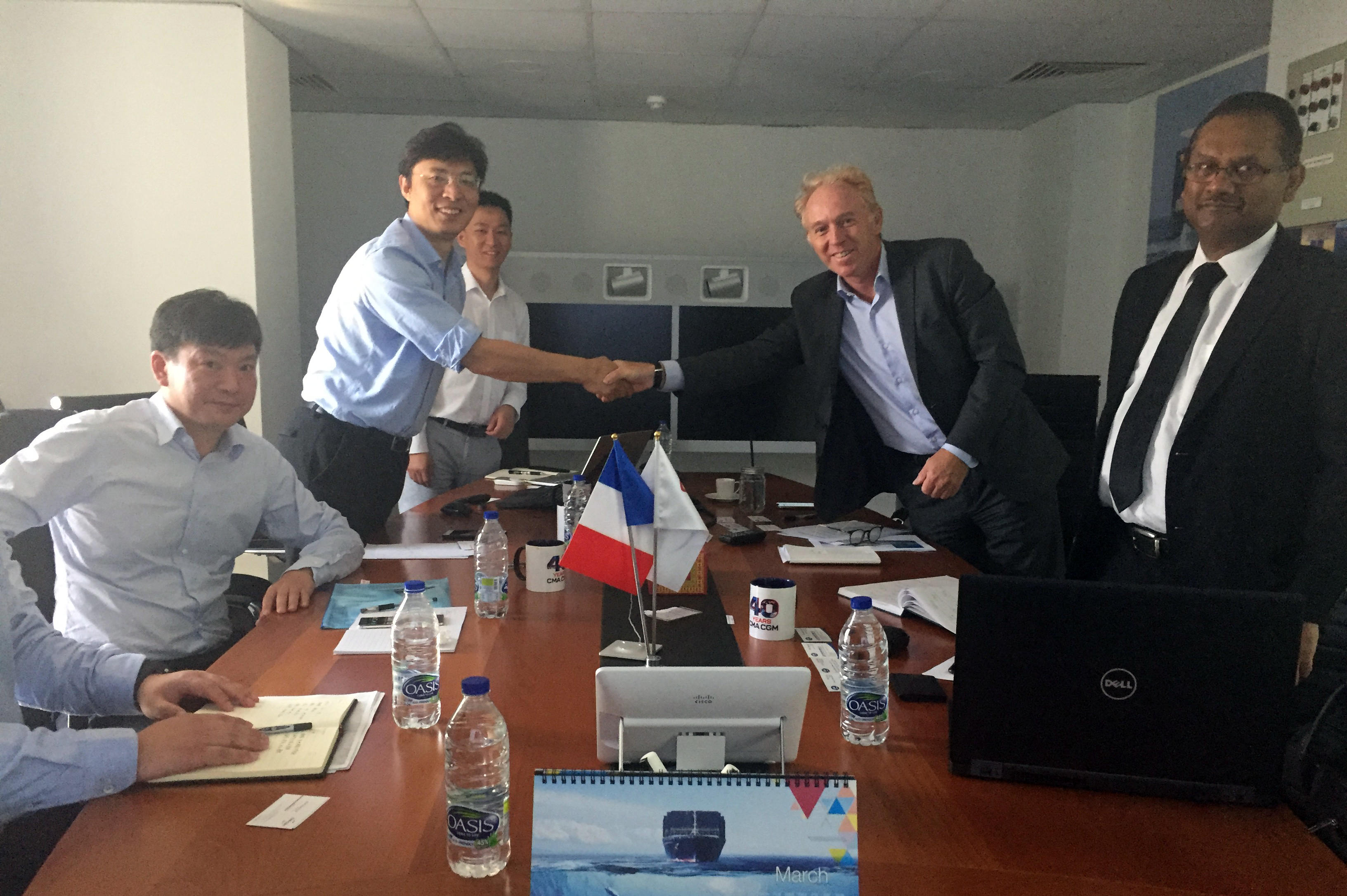 Mr. Courquin對馬聚勇一行的來(lái)訪(fǎng)表示熱烈歡迎,并介紹了達飛集團及達飛海灣地區的發(fā)展情況。達飛海運集團(CMA CGM)總部設在法國馬賽,始建于1978年,是法國第一、世界第三的集裝箱承運公司。Mr. Courquin希望通過(guò)此次會(huì )面,雙方可以增進(jìn)認識、擴大共識、建立互信,充分發(fā)揮雙方優(yōu)勢,為開(kāi)展合作墊定堅實(shí)基礎。