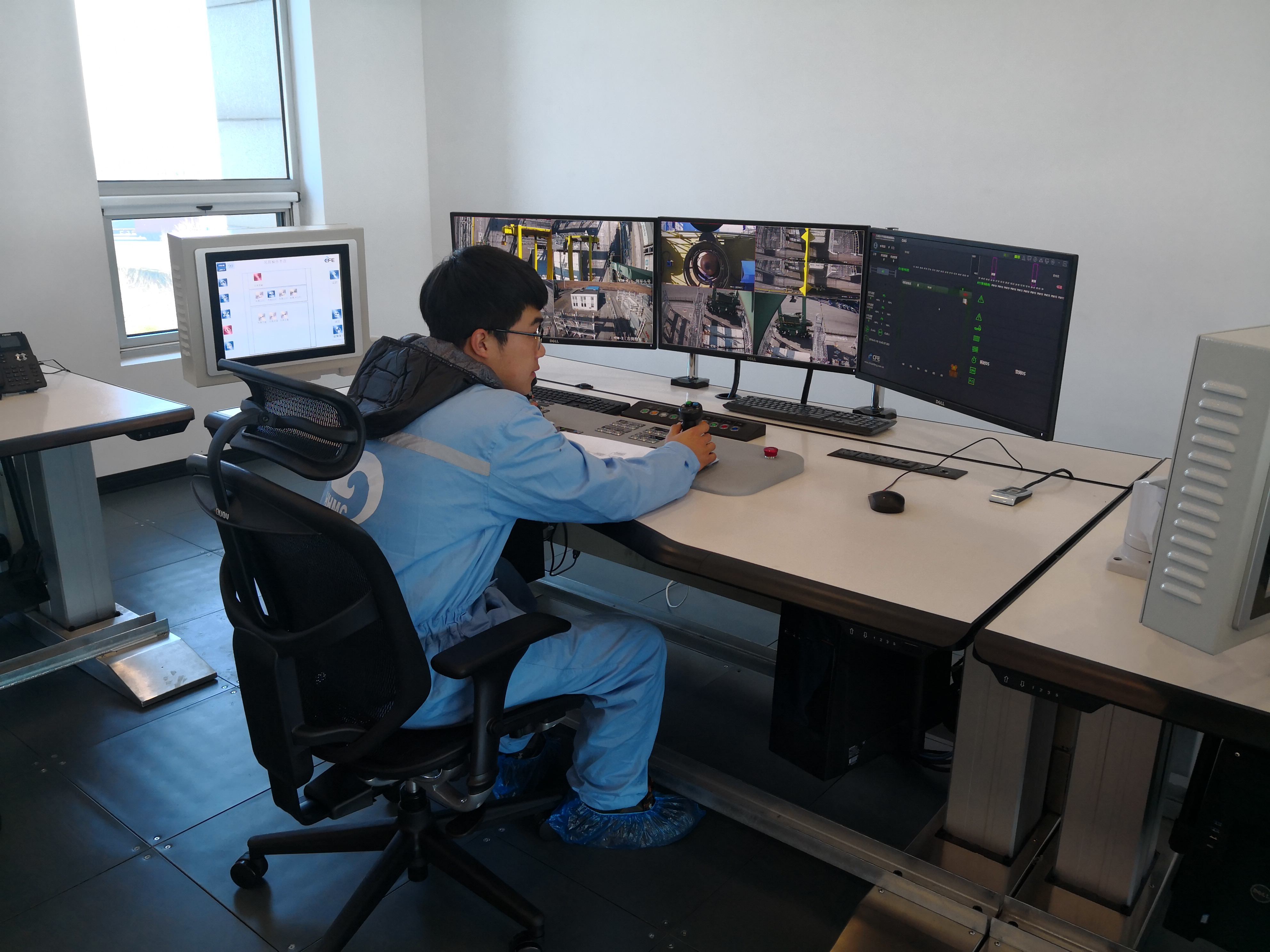 2019年的1月中旬,天津港太平洋碼頭空無(wú)一人,經(jīng)過(guò)自動(dòng)化改造后的2臺場(chǎng)橋(RTG)正在有條不紊地作業(yè)?!安倏v”這一切的司機,遠在中控室,而這2臺設備全部由一人控制。改造后的設備,操作更為舒適與安全,通過(guò)遠程操控,設備司機師傅可遠程操作多臺RTG進(jìn)行生產(chǎn)作業(yè),改變了過(guò)去工作環(huán)境惡劣的狀況。