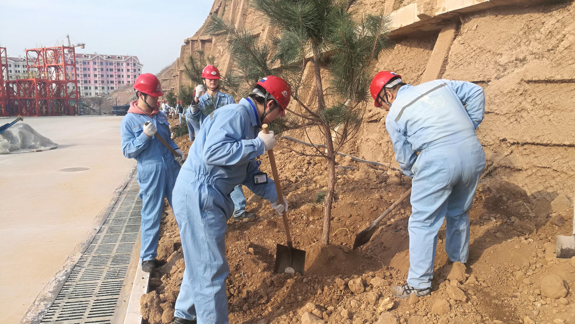 瘠地力挖苗培入,荒坡手植樹(shù)皆嘉。三倆人,一棵樹(shù)。在廠(chǎng)區的新建護坡下,大家熱火朝天的忙著(zhù),紛紛揮鍬鏟土,定點(diǎn)挖坑,放苗回填,你扶我植,好不熱鬧。在春天植入希望,我們栽種的不僅是常青樹(shù),更是快樂(lè )和責任。
