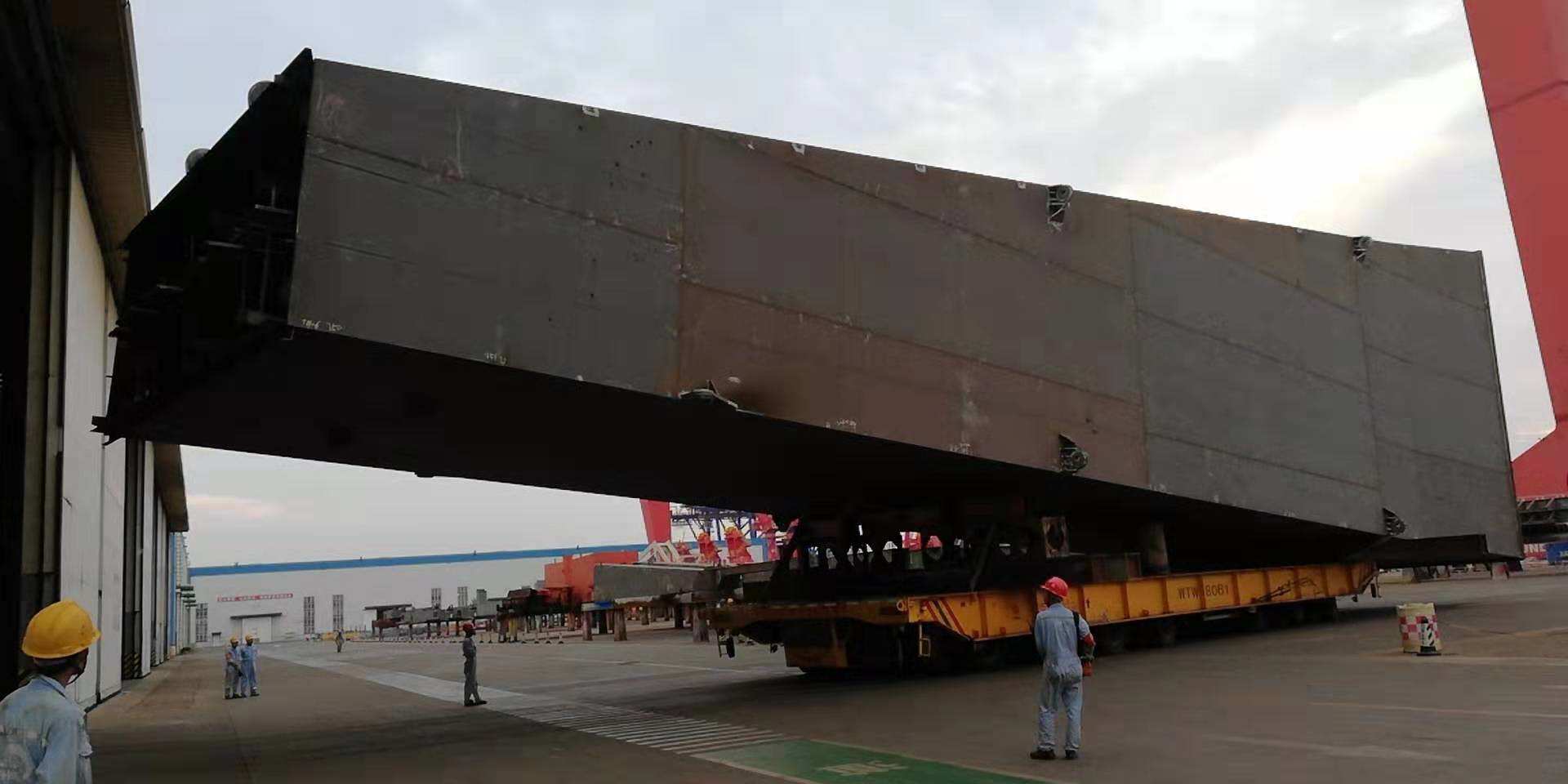 8月23日晚上19:30分,運載M30剛性腿整體分段的380T平板車(chē),在操控人員的審慎操控下,緩緩駛出海西重機鋼構制作車(chē)間大門(mén),成功轉運出車(chē)間!這一幕看似平淡無(wú)奇的場(chǎng)景,凝結了多少員工的汗水和智慧,后面又有多少創(chuàng )新,唯有親身經(jīng)歷了這場(chǎng)“戰斗”的人才能真正體會(huì )。