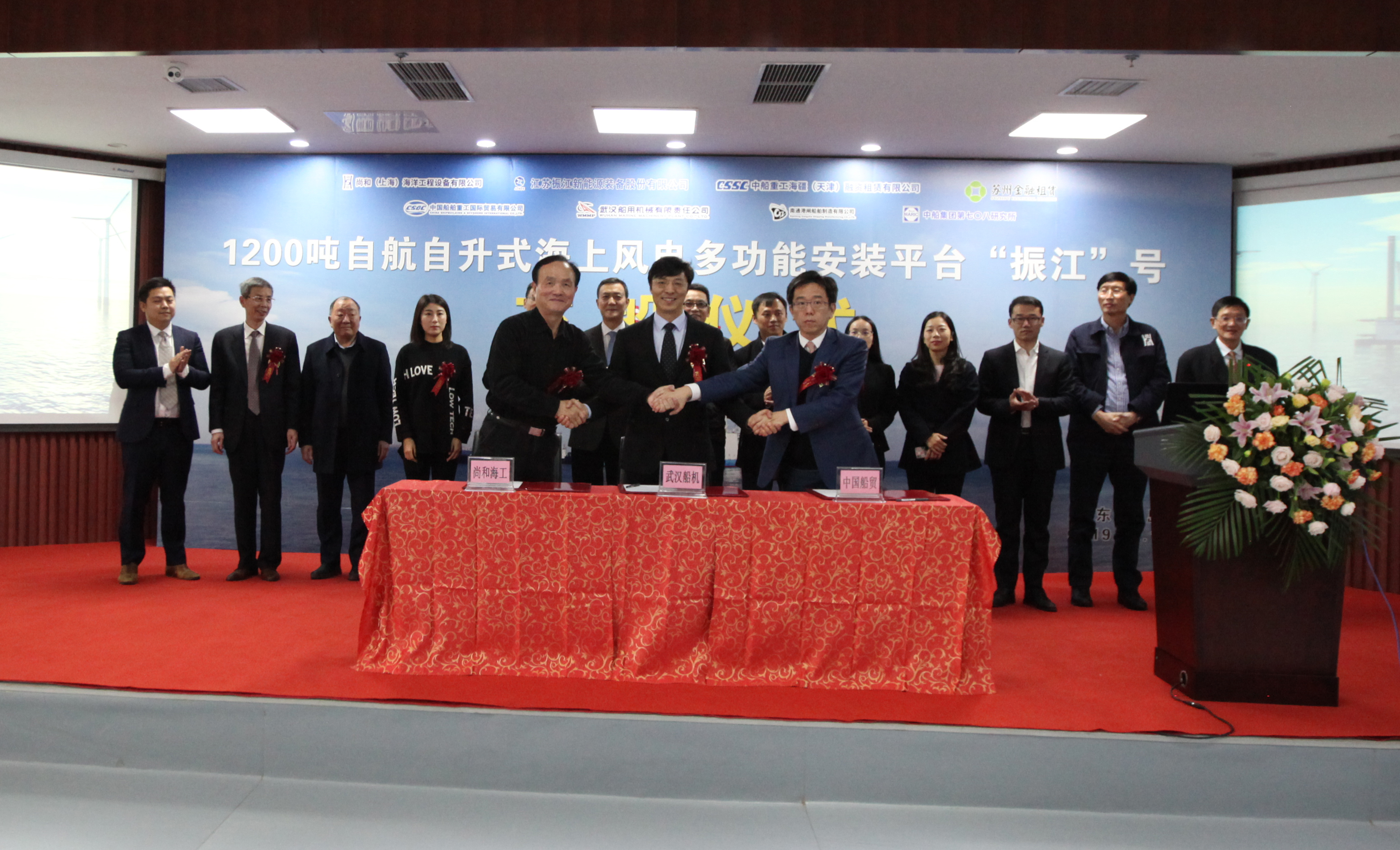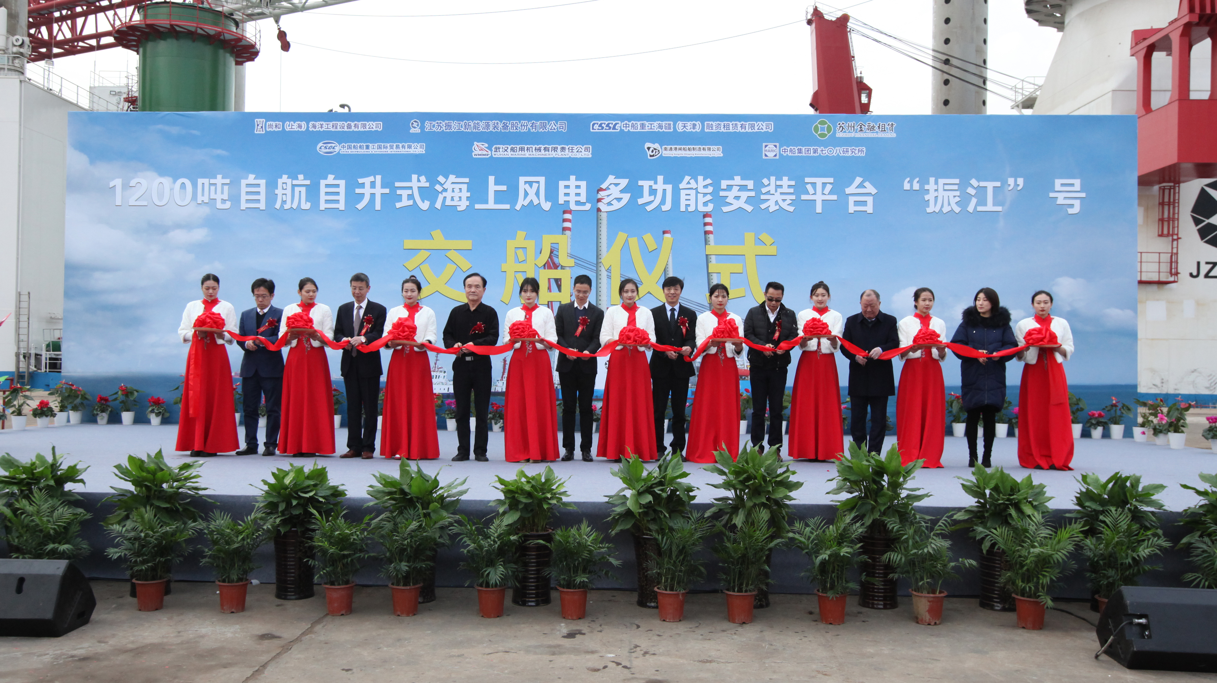12月13日下午,國內首座1200噸自航自升式風(fēng)電安裝平臺——“振江”號交付儀式在武漢船機海西重機隆重舉行。尚和(上海)海洋工程裝備有限公司、江蘇振江新能源裝備股份有限公司、中信銀行、中國船舶及海洋工程設計研究院、中國船級社等單位領(lǐng)導和項目相關(guān)人員共同見(jiàn)證了這一歷史性時(shí)刻。