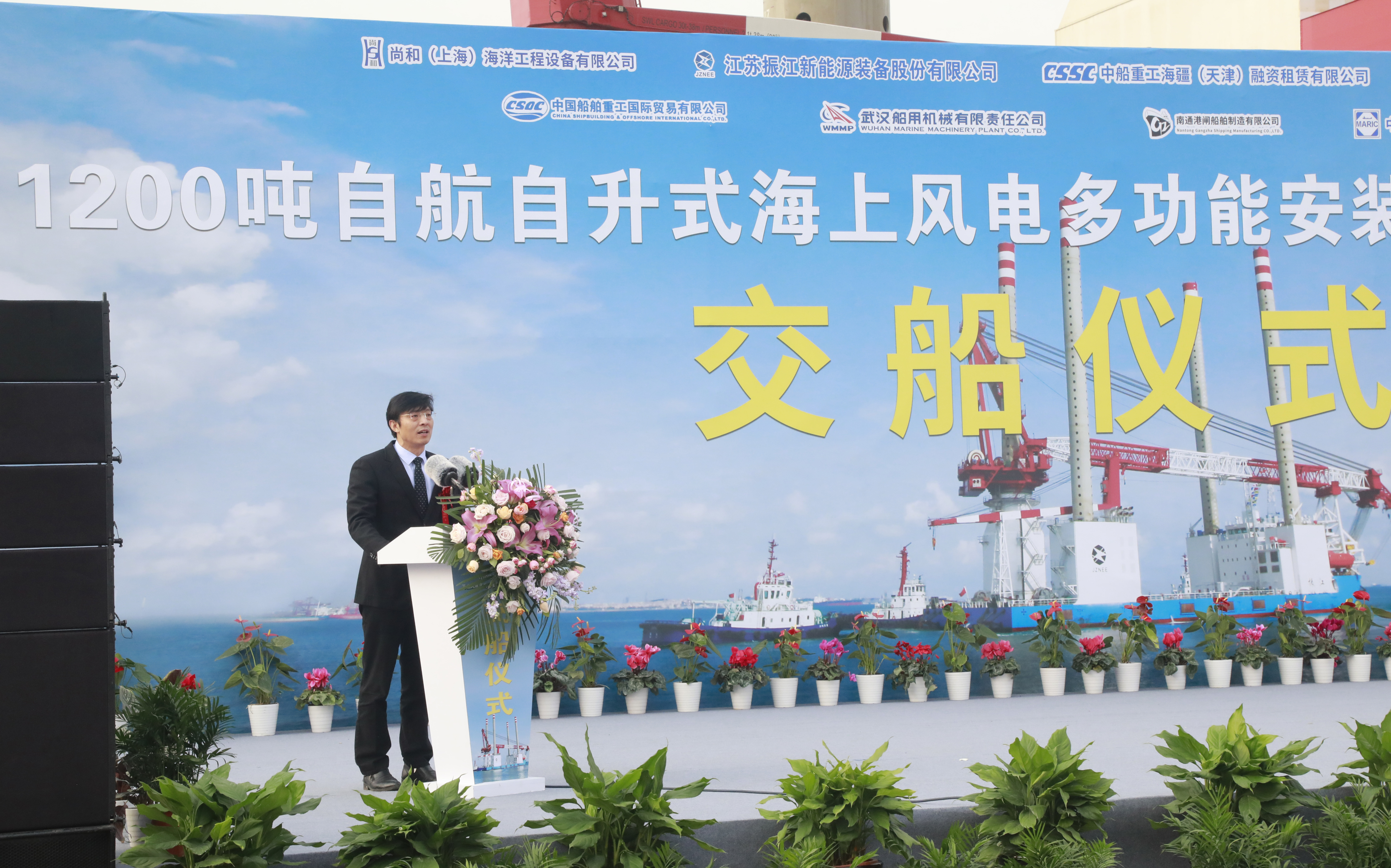 武漢船機黨委書(shū)記、董事長(cháng)馬聚勇代表公司在平臺交付儀式上致辭,對參加交船儀式的各位領(lǐng)導、同仁以及為該平臺生產(chǎn)制造和試驗成功付出辛勤勞動(dòng)的所有監造人員和工作人員表示由衷感謝。馬聚勇同志指出,“振江”號風(fēng)電安裝平臺是武漢船機連續交付多艘自升式輔助平臺后,再次作為總包方承擔的全部項目建造任務(wù)。項目合同簽訂后,公司上下高度重視,充分發(fā)揮設備集成和平臺總包能力,集中武漢本部和青島海西兩地優(yōu)勢資源,不斷加強生產(chǎn)組織管理,從源頭上保證了建造質(zhì)量和周期,較好地滿(mǎn)足了平臺建造進(jìn)展。自平臺開(kāi)工建造到今天正式交船,中國船級社始終給予悉心指導,各參建方發(fā)揮自身優(yōu)勢,通力合作,突破多項技術(shù)難關(guān),為平臺順利交付和使用提供了強有力保障