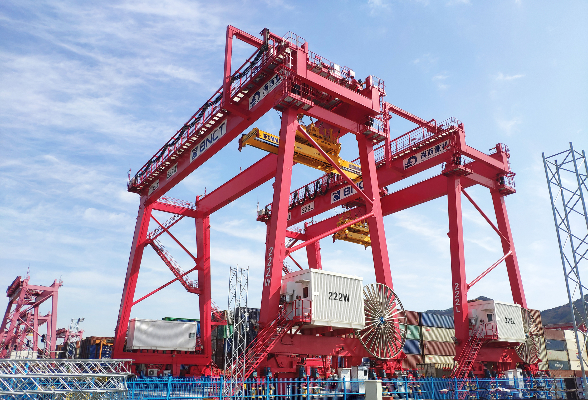 該批設備是雙方2019年簽訂的3臺65LT-70M岸邊集裝箱起重機、10臺40T自動(dòng)化軌道吊項目合同的第一批交付設備,應用于BNCT運營(yíng)碼頭——亞洲首個(gè)垂直布置的堆場(chǎng)自動(dòng)化碼頭。