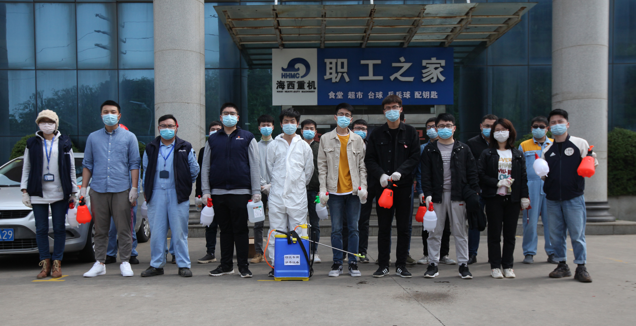 五月的青島,陽(yáng)光明媚,天氣有一絲悶熱,但比這天氣更火熱的,是干勁十足的志愿者們火一樣的熱情。一大早,各團(總)支部的青年團員志愿者們就已在辦公樓大廳集合完畢。大家整頓好消毒用品,一同出發(fā)。志愿者們分為三隊,分別對生活區食堂,一、二號宿舍樓等區域進(jìn)行消毒工作。大家分工明確,噴壺噴霧器齊上陣,對食堂大廳,宿舍樓道等區域噴灑消毒液,進(jìn)行了徹底消毒殺菌,對樓梯間、電梯等區域進(jìn)行清掃,認真用酒精抹布清理樓梯扶手。整個(gè)活動(dòng)過(guò)程,大家忙的不亦樂(lè )乎,收獲滿(mǎn)滿(mǎn)。