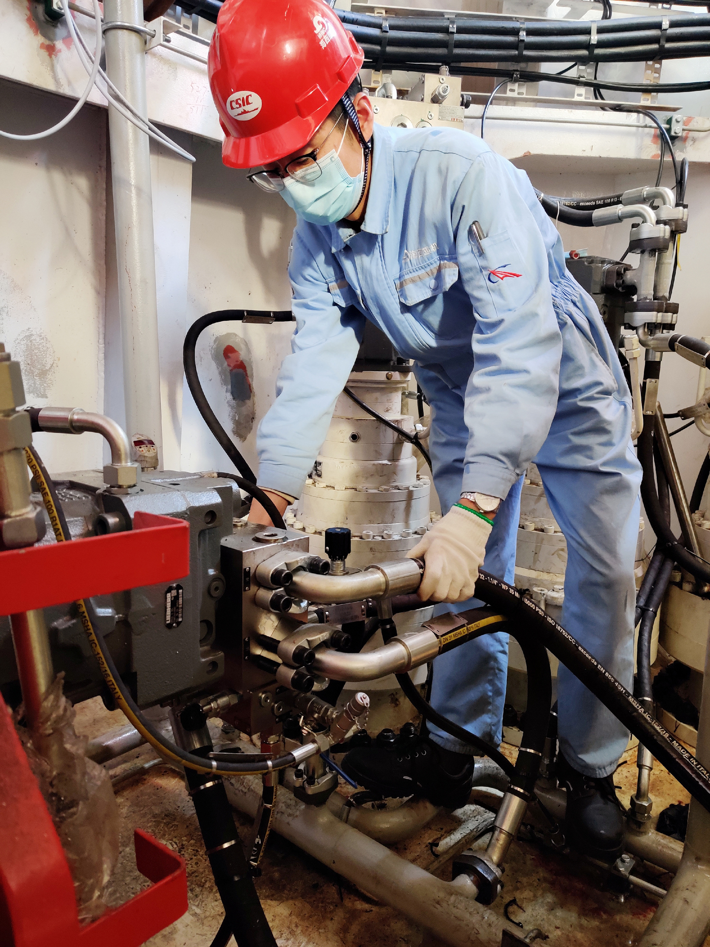 從管路預制,泵壓試驗,酸洗串油,到管路復裝,張偉康總是在馮鵬超的傳幫帶下,分工合作,恰似黃金拍檔。在海工設備后期液壓系統調試的半個(gè)月中,他們和總部工程師一起,每天主動(dòng)加班調試到深夜。由于產(chǎn)生液壓系統故障的可能性因素較多,排查起來(lái)較為困難,面對調試中發(fā)生的諸多難題,他們迎難而上,敢于擔當,認真分析討論各種解決方案,并嚴格進(jìn)行逐一排查,最終完美解決了故障。張偉康新人得力,敢于主動(dòng)擔當,堅守液壓潤滑陣地,為保證整個(gè)項目按時(shí)交付爭分奪秒。