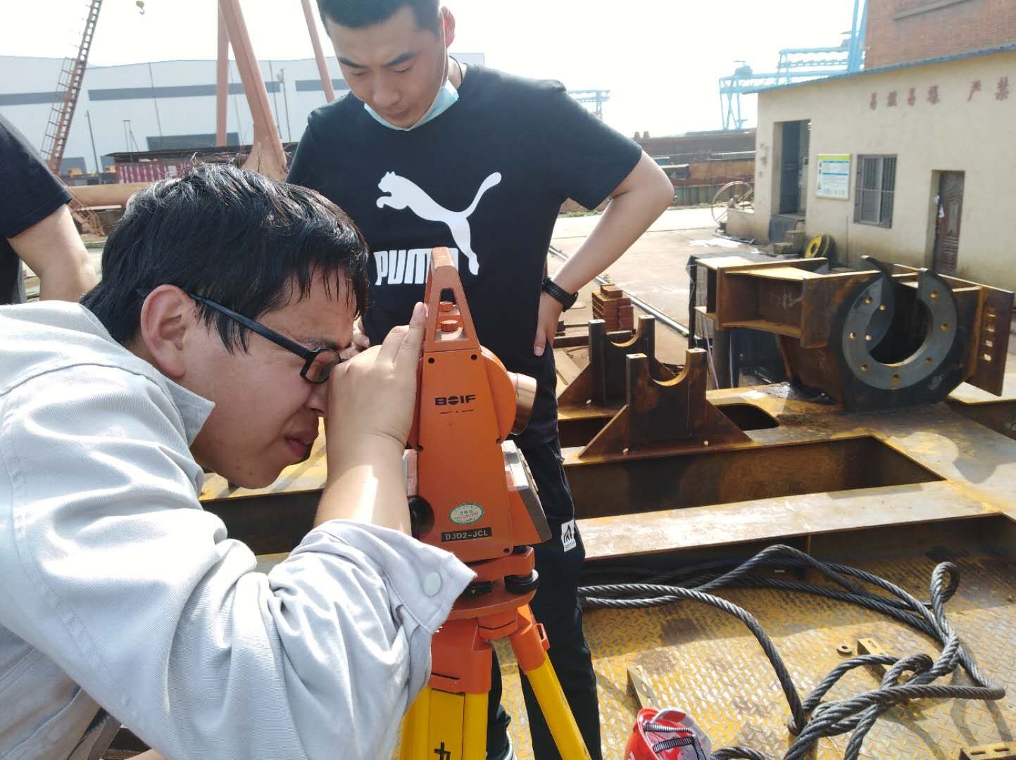 “我先后前往紅光碼頭總裝現場(chǎng)以及九橋鋼結構制作現場(chǎng),幾乎每天都有雨,現場(chǎng)施工壓力大,經(jīng)常要冒雨趕工,在雨中工作已經(jīng)成為常態(tài),哪怕渾身濕透也要繼續。通過(guò)與施工隊溝通,在師傅牟壽堂的指導下,清點(diǎn)現場(chǎng)物資,不斷解決現場(chǎng)技術(shù)問(wèn)題,加深了對整機結構和裝配的理解?,F場(chǎng)碼頭吊裝需要使用浮吊,浮吊方案的編制十分復雜,不僅僅要考慮吊高、幅度與載重,還要考慮水位、吊裝角度、臂架干涉等一系列的問(wèn)題,為了把參數計算準確,經(jīng)常加班加點(diǎn),還好努力就有收獲,現在對吊裝作業(yè)的理解更深了?!眲㈤F旗在感嘆自己的成長(cháng),感恩于他的付出,畢竟無(wú)論是小青年還是老青年,這片藍天是靠大家共同撐起的。