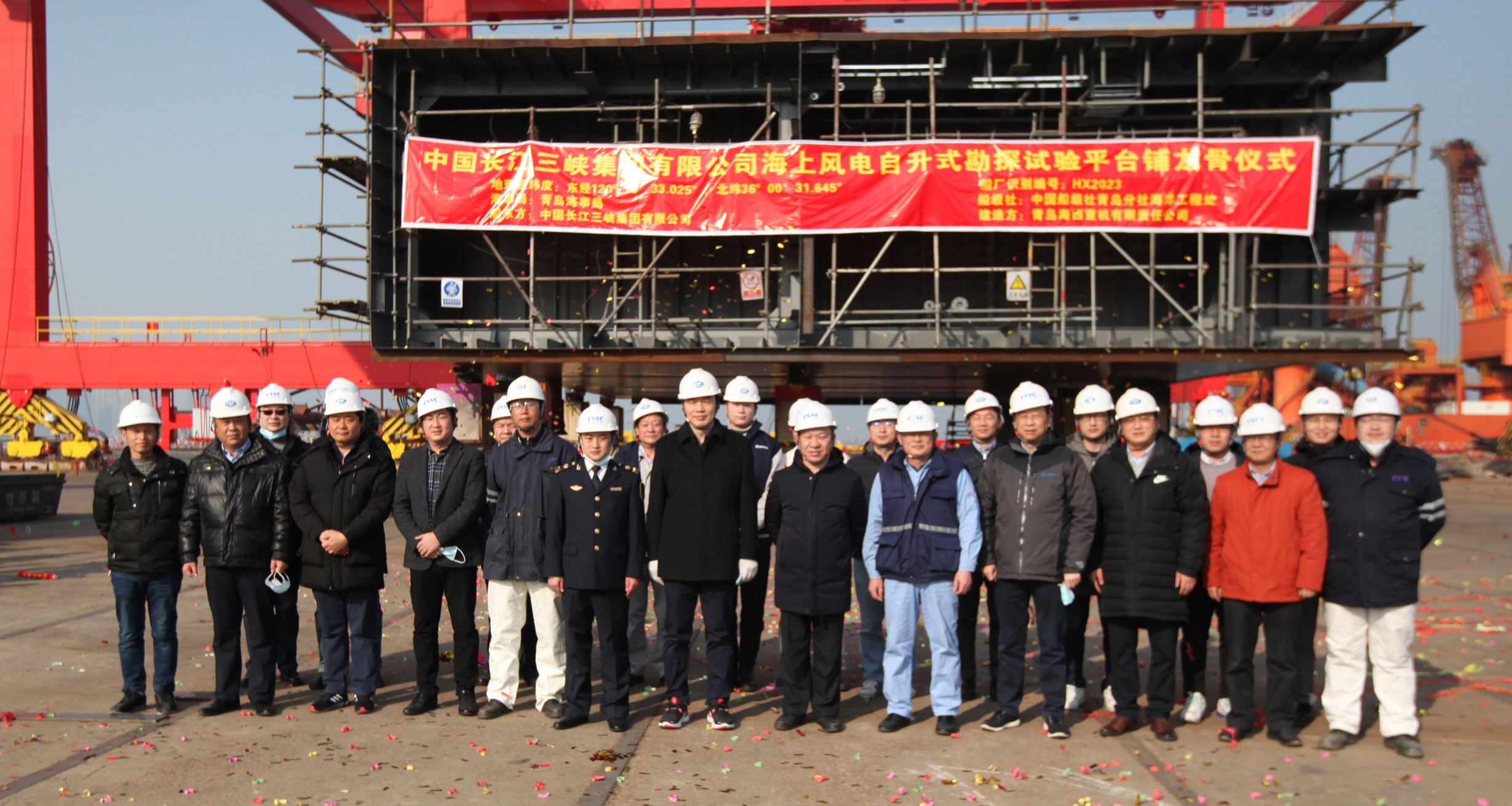12月22日上午,在青島海事局、中國船級社青島分社、中國長(cháng)江三峽集團有限公司、中國船舶集團旗下武漢船機海西重機各方代表共同見(jiàn)證下,“中國三峽101”海上風(fēng)電自升式勘探試驗平臺順利完成鋪龍骨儀式,標志著(zhù)該項目正式進(jìn)入平臺搭載建造階段。