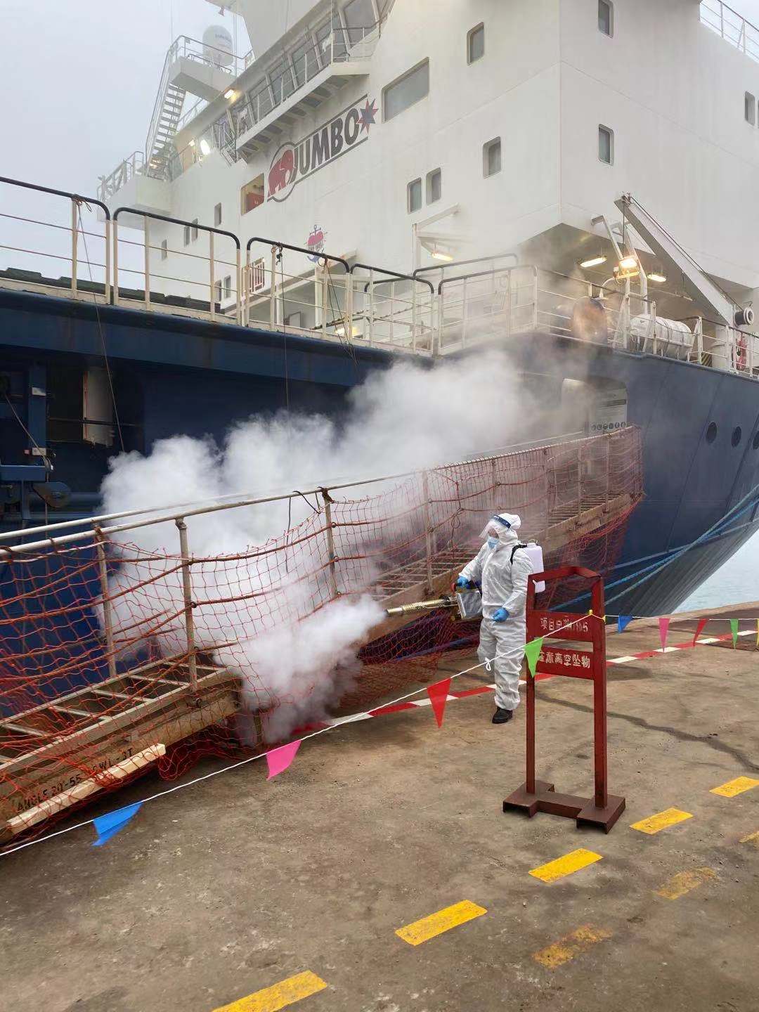 靠泊船舶日常巡查嚴管。碼頭靠泊的外籍、外地船舶及隨船人員,全方位船舶消毒,認真做好人員排查登記、健康管理告知、居船隔離觀(guān)察、生活垃圾處置和信息上報。