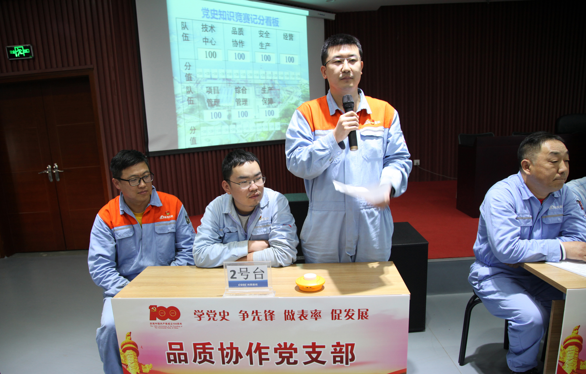 聚力同心齊奮進(jìn),學(xué)史激發(fā)新作為。為慶祝中國共產(chǎn)黨成立 100 周年,謳歌中華民族實(shí)現偉大復興的奮斗歷程,繼承革命先烈的優(yōu)良傳統,傳承紅色基因,增進(jìn)全體黨員干部對黨的知識的了解,5月20日,由中國船舶集團旗下武漢船機海西重機黨委主辦,公司團委協(xié)辦,以“學(xué)黨史 爭先鋒 做表率 促發(fā)展”為主題的黨史知識競賽火熱舉行,取得圓滿(mǎn)成功。