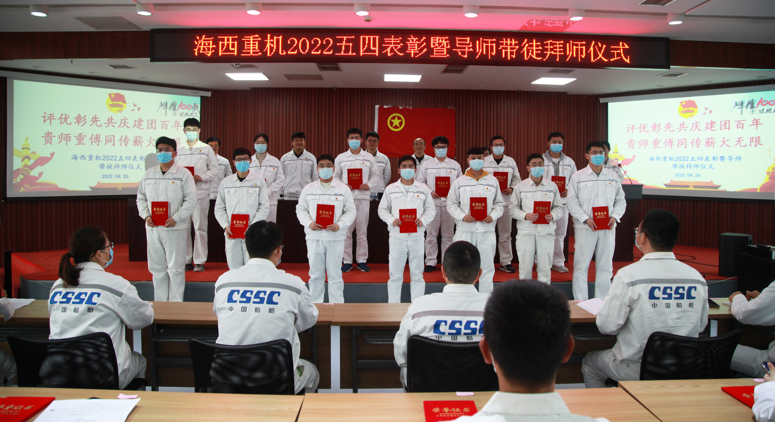 為樹(shù)立典型、表彰先進(jìn),激勵廣大團員青年以良好的精神面貌和優(yōu)良的工作業(yè)績(jì)迎接中國共產(chǎn)主義青年團成立100周年,促進(jìn)公司青年人才隊伍建設,為公司高質(zhì)量發(fā)展注入活力,4月26日下午,中國船舶集團旗下武漢船機海西重機公司2022五四表彰暨導師帶徒拜師儀式在901會(huì )議室順利召開(kāi)。海西重機黨委副書(shū)記、總經(jīng)理蔣新標,黨委副書(shū)記、紀委書(shū)記、工會(huì )主席朱聲凱,副總經(jīng)理謝宛朋,工會(huì )副主席金明清,團委書(shū)記張金營(yíng),人力資源部部長(cháng)鄧向記,各五四表彰先進(jìn)集體和個(gè)人,2021年優(yōu)秀師徒、2022年新結對師徒參加會(huì )議。