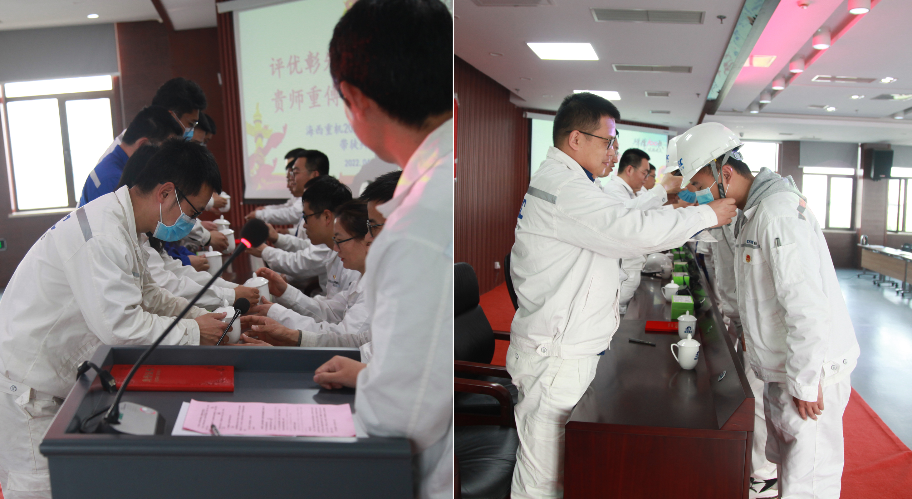 “師傅,請喝茶!”年輕的徒弟們帶著(zhù)敬意和感激,向自己的師傅敬上一杯清茶。這是在海西重機2022年“導師帶徒”簽約儀式上動(dòng)人的一幕。凡學(xué)莫不有師,為學(xué)莫不尊師。青藍相接,薪火相傳。自2017年以來(lái),海西重機組織開(kāi)展的“導師帶徒”活動(dòng),經(jīng)過(guò)不斷地傳承改進(jìn),已成為一項傳統品牌活動(dòng),期間涌現出無(wú)數師徒同心、薪火相傳的動(dòng)人事跡。一大批青年人才通過(guò)這項活動(dòng)取得了顯著(zhù)的進(jìn)步,成長(cháng)為“思想過(guò)硬、素質(zhì)過(guò)硬、技術(shù)過(guò)硬”的公司骨干和中堅力量。