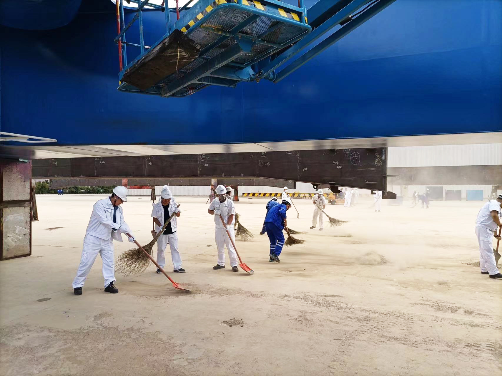 各黨支部根據劃分好的勞動(dòng)區域精心策劃,對支部參與人員進(jìn)行分組,細化任務(wù)分工,提前領(lǐng)用清潔工具,為活動(dòng)開(kāi)展做足準備。每天下午四點(diǎn),相應的黨支部根據分工安排,帶好清潔工具,分組奔赴新拼裝場(chǎng)地區域。大家熱情似火,干勁十足。每個(gè)參與者不怕苦不怕累,不怕塵土迷了眼睛,用掃帚掃、用鐵鍬鏟,齊心協(xié)力,爭做先鋒。汗水濕透了每個(gè)人的衣襟,熱火朝天的勞動(dòng)場(chǎng)面感染著(zhù)在場(chǎng)每一個(gè)人,工作服蒙上了一層塵土,每個(gè)人的臉上卻洋溢著(zhù)笑容,帶走了泥土,留下了熠熠生輝的奉獻精神。