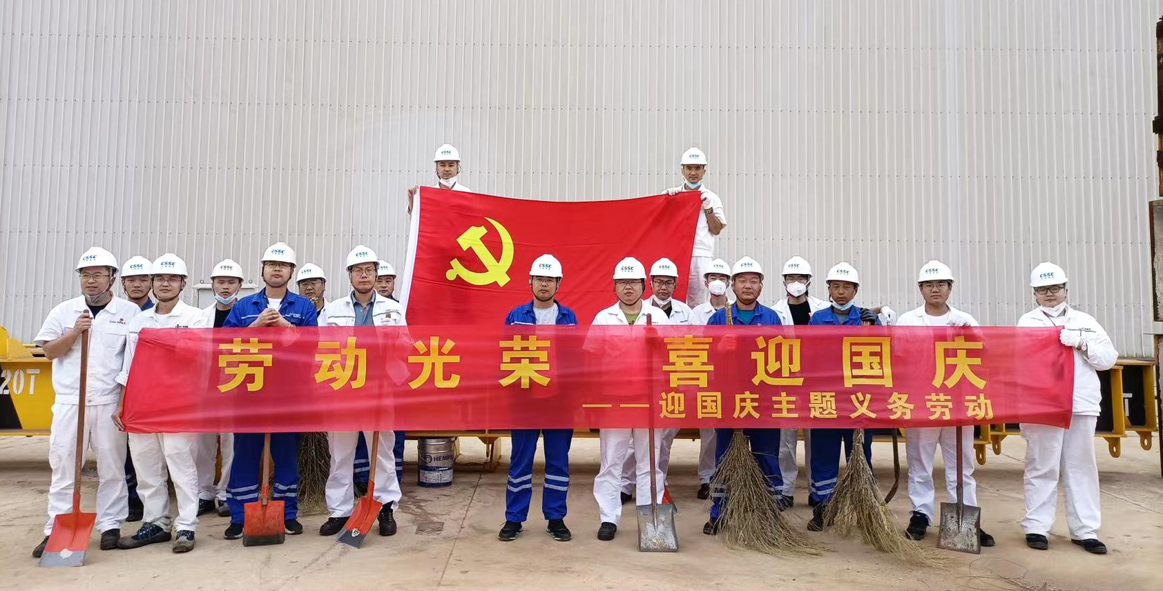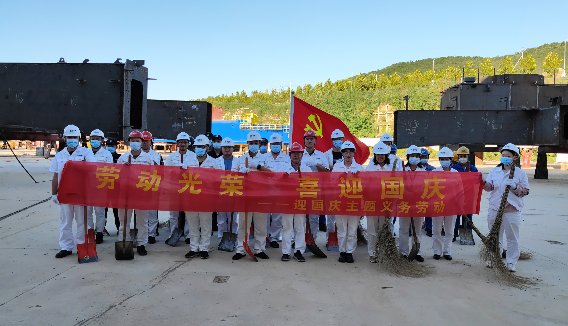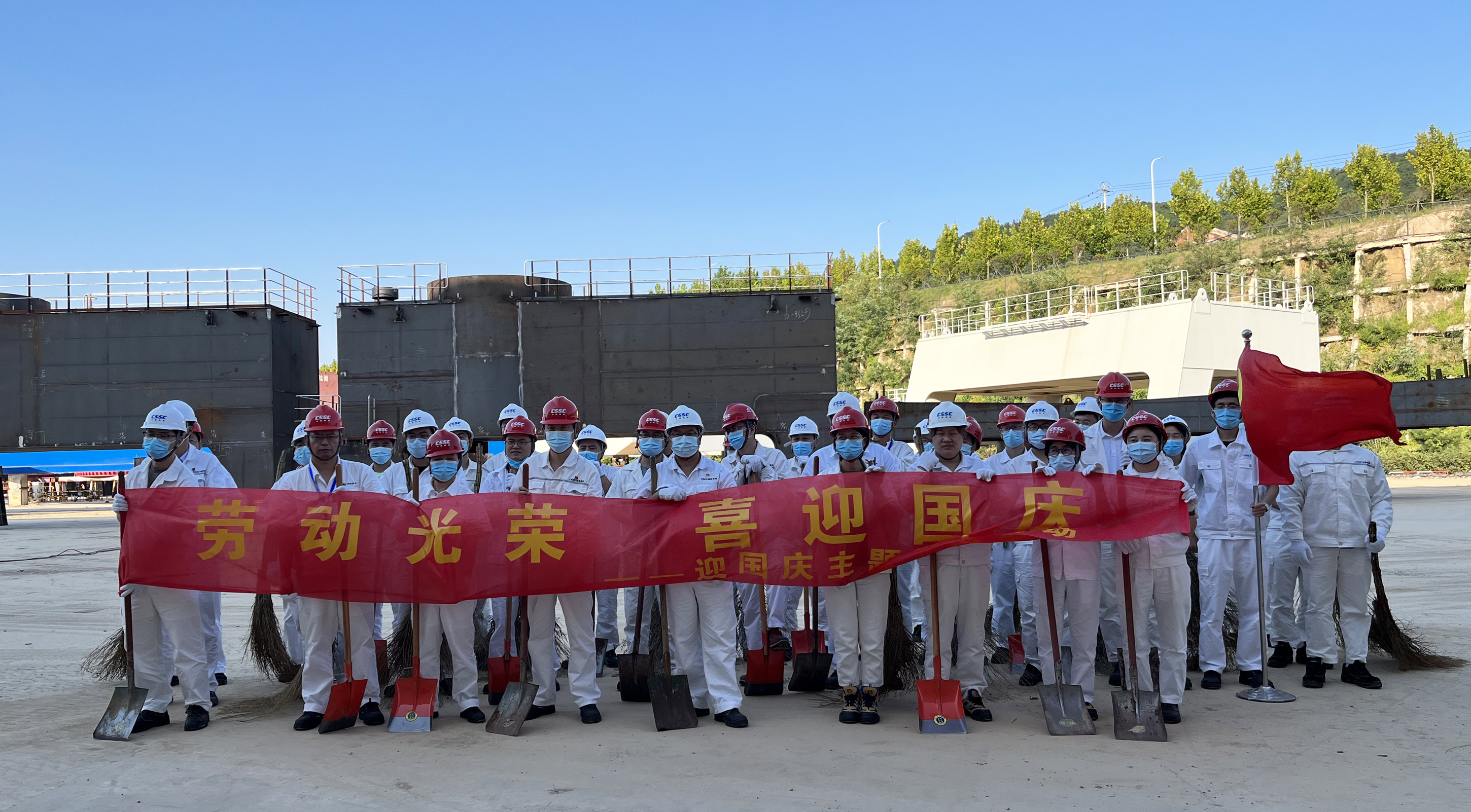 近期臺風(fēng)過(guò)境,暴雨天氣帶來(lái)了秋季的涼意,卻也給廠(chǎng)區生產(chǎn)帶來(lái)了不便。新拼裝場(chǎng)地區域雨水褪去后留下一層厚厚的泥土,影響了該區域的生產(chǎn)活動(dòng)。值此國慶節來(lái)臨之際,為建設美麗廠(chǎng)區,喜迎“國慶”,充分發(fā)揮黨員先鋒模范作用以及入黨積極分子、青年團員和骨干的主觀(guān)能動(dòng)性,中國船舶旗下武漢船機海西重機公司黨委于9月20日-9月29日組織開(kāi)展迎國慶主題義務(wù)勞動(dòng)活動(dòng),清理新拼裝場(chǎng)地泥土。