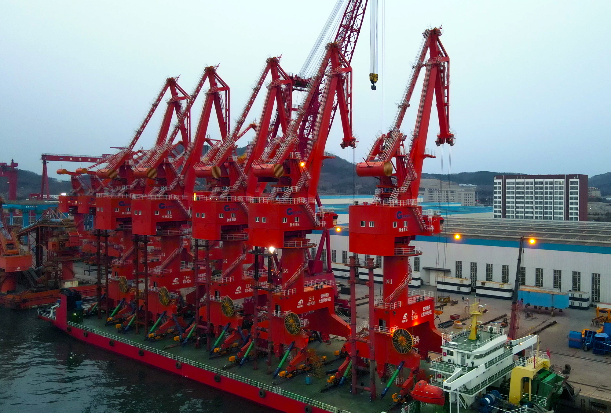 2月7日,中國船舶集團旗下武漢船機海西重機公司中標北部灣港北海港4臺40t-43m門(mén)座式起重機項目;2月10日,海西重機為北部灣欽州港打造的5臺40t-43m門(mén)座式起重機順利發(fā)運。中標+發(fā)運,新春忙不停。