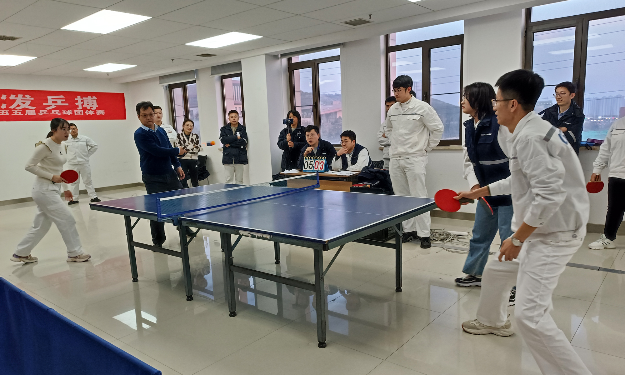 乒乓球團體賽是海西重機的傳統品牌活動(dòng),有著(zhù)廣泛的群眾基礎,深受大家的喜愛(ài)。本屆團體賽是疫情過(guò)后公司舉辦的首場(chǎng)體育競賽活動(dòng),各參賽隊伍為達到最好的競技狀態(tài)積極熱身、蓄勢待發(fā)。賽場(chǎng)上,選手們激揚塵封一冬的熱情,激情揮拍、盡展風(fēng)彩;扣殺、吊球,招招出奇;斗智、斗勇,每分必爭;強隊不輕敵,弱隊也不放棄。戰況瞬息變化,往往是山重水復疑無(wú)路,柳暗花明又一村。賽場(chǎng)氣氛熱烈歡快,精彩的比賽也博得場(chǎng)邊觀(guān)眾的陣陣喝彩,紛紛為自己支持的代表隊吶喊助威。