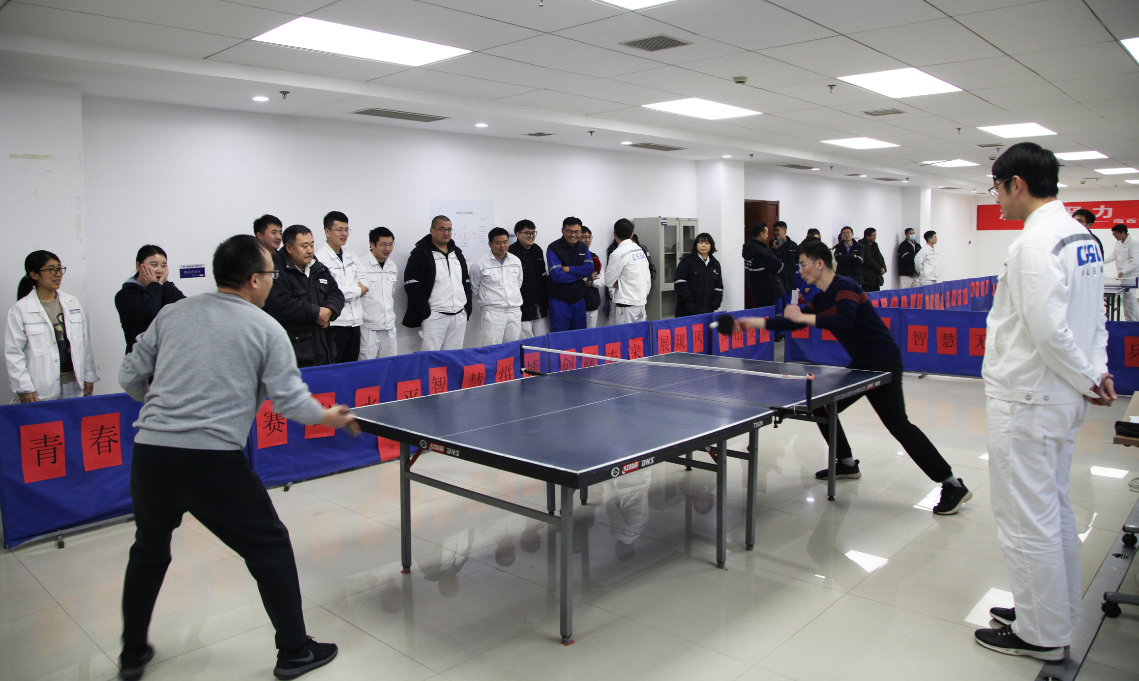 陽(yáng)春三月,疫去春來(lái),萬(wàn)物復蘇,備受期待的中國船舶集團旗下武漢船機海西重機公司第五屆乒乓球團體賽于2月28日揭開(kāi)序幕。比賽獲得了大家的積極響應,來(lái)自各黨支部及部門(mén)的8支代表隊,50余名職工參加了此次比賽,歷經(jīng)3天激烈角逐,于3月2日圓滿(mǎn)落幕。最終,項目管理黨支部隊勇奪桂冠,生產(chǎn)保障部隊、港機所隊分別獲得亞軍、季軍。公司黨委副書(shū)記、紀委書(shū)記、工會(huì )主席朱聲凱到比賽現場(chǎng)為選手們鼓勁加油,并為獲獎人員頒獎。