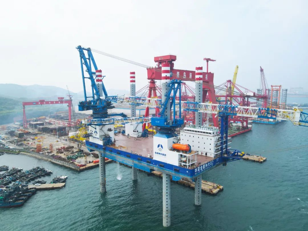 華夏金租神大02號1200噸風(fēng)電安裝平臺于2022年8月21日開(kāi)工建造,2023年6月30日到達青島,2023年8月21日完成試航。到達青島海西后,項目組成員在01號平臺成功交付的基礎上,采取扎實(shí)有效的措施,狠抓生產(chǎn)組織與過(guò)程控制,僅用了不到3個(gè)月的時(shí)間就完成主輔吊機安裝、樁腿接樁、系泊試驗、試航等主要工作,提前合同交貨期交船,向用戶(hù)交上了一份滿(mǎn)意的答卷。