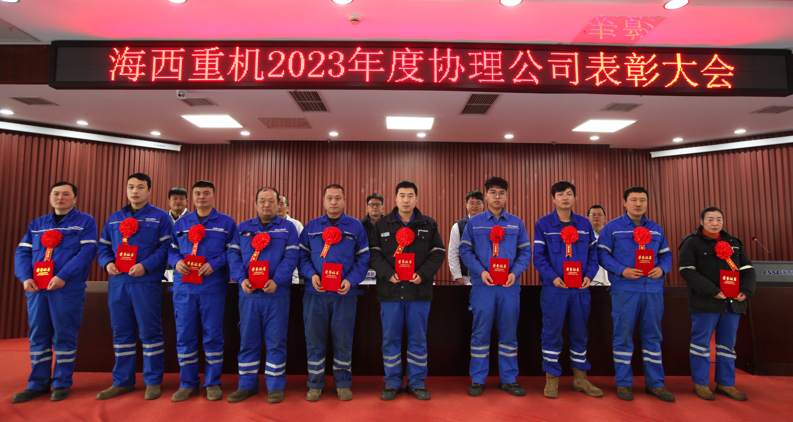 1月27日,中國船舶集團旗下武漢船機海西重機公司2023年度優(yōu)秀協(xié)理公司及協(xié)理公司優(yōu)秀技能人員、安全生產(chǎn)先進(jìn)單位及先進(jìn)個(gè)人表彰大會(huì )在901會(huì )議室順利召開(kāi),海西重機領(lǐng)導班子、各部門(mén)負責人、各協(xié)理公司代表、先進(jìn)個(gè)人等120余人參加了表彰大會(huì )。