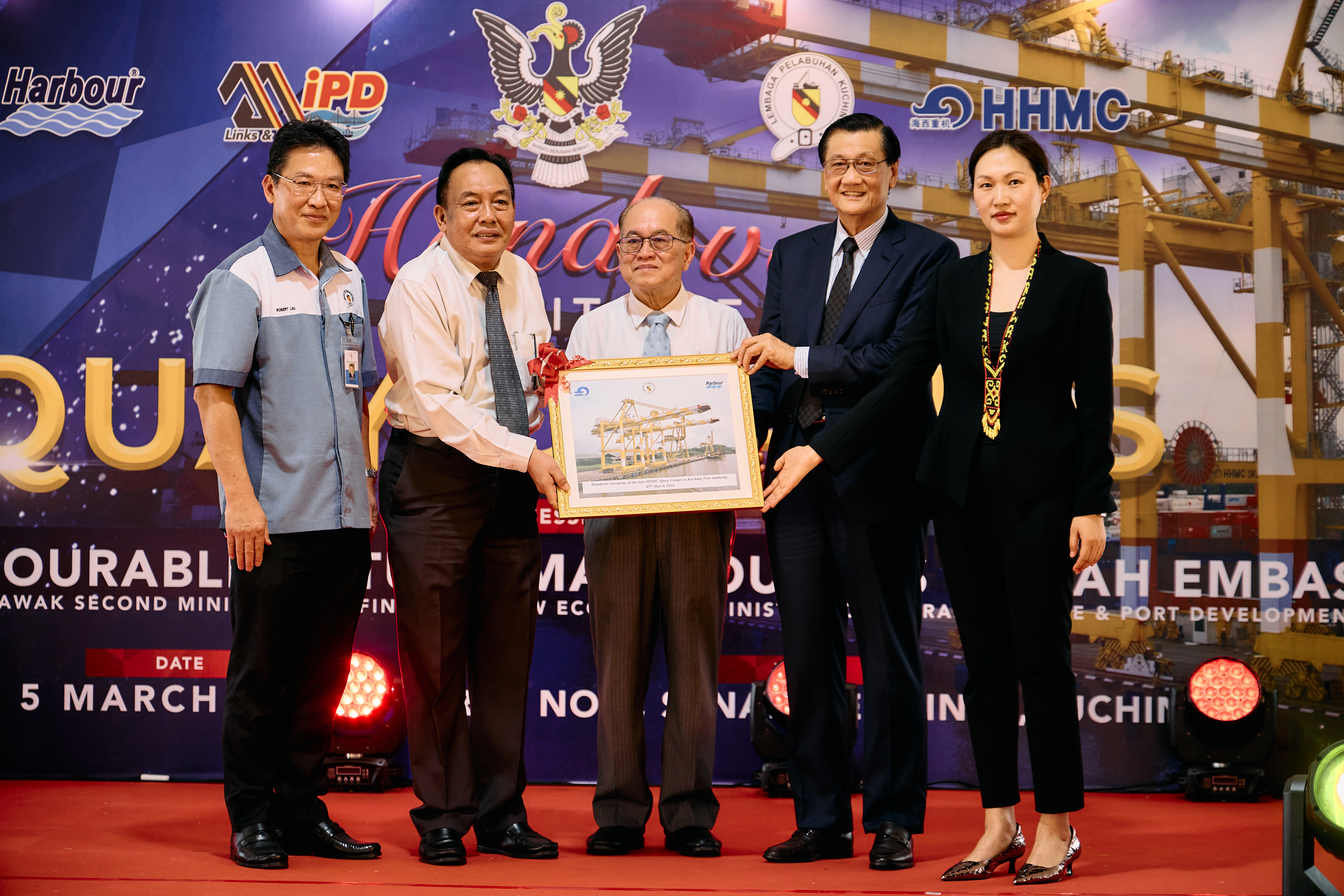 交機儀式上,馬來(lái)西亞砂拉越州副總理兼基礎建設與港口發(fā)展部部長(cháng)Amar Douglas Uggah Embas、古晉港港務(wù)局主席Awang Bemee Bin Hj.Pengiran Ali Basah、Harbor Link集團董事長(cháng)Francis Yong Piaw Soon蒞臨現場(chǎng)并分別致辭,各方強調了該項目對當地港口發(fā)展的重要經(jīng)濟意義與社會(huì )意義,同時(shí)對海西重機產(chǎn)品以及項目團隊給予了充分肯定。隨后,各方在岸橋前進(jìn)行剪彩并合影留念。