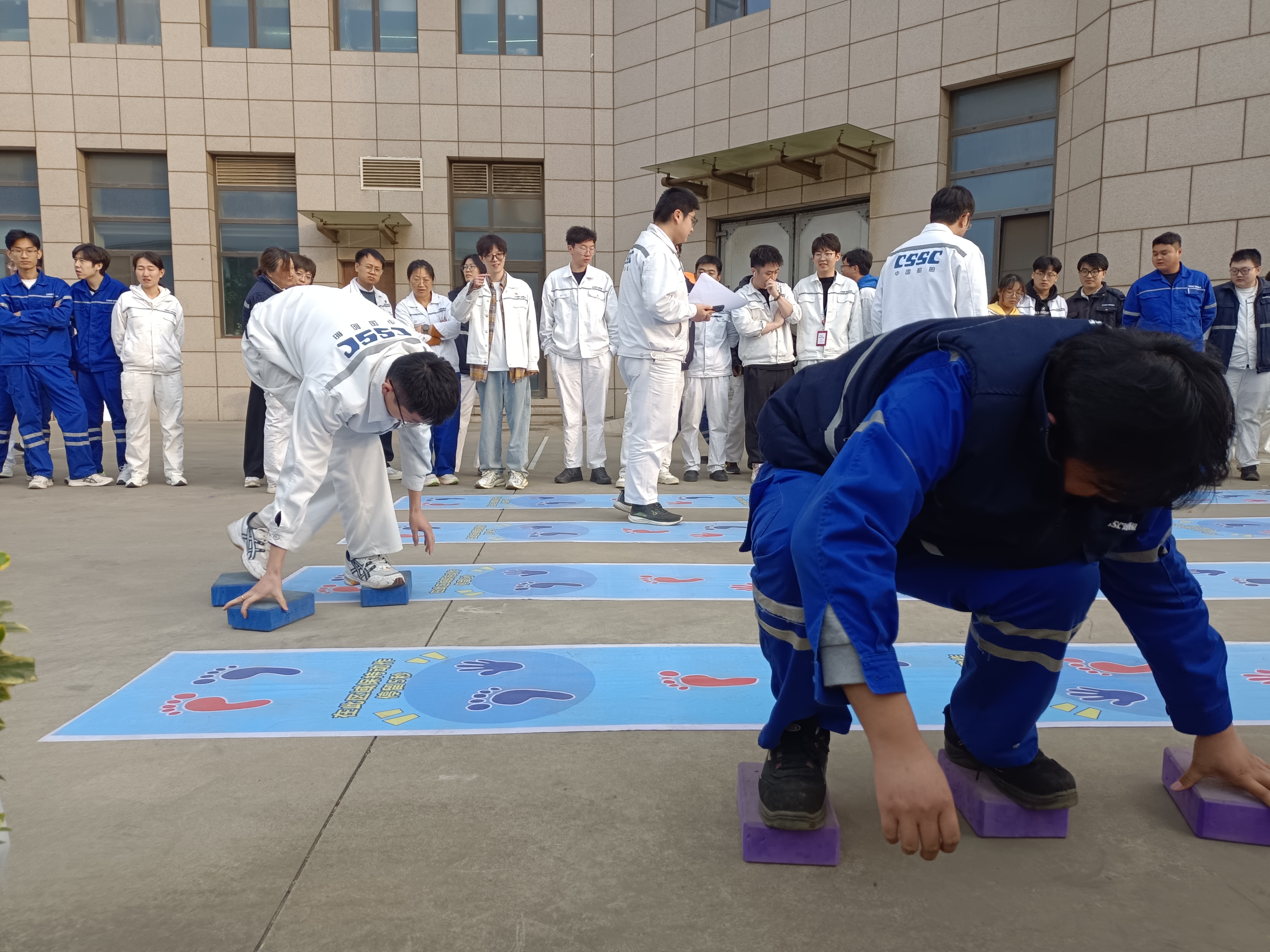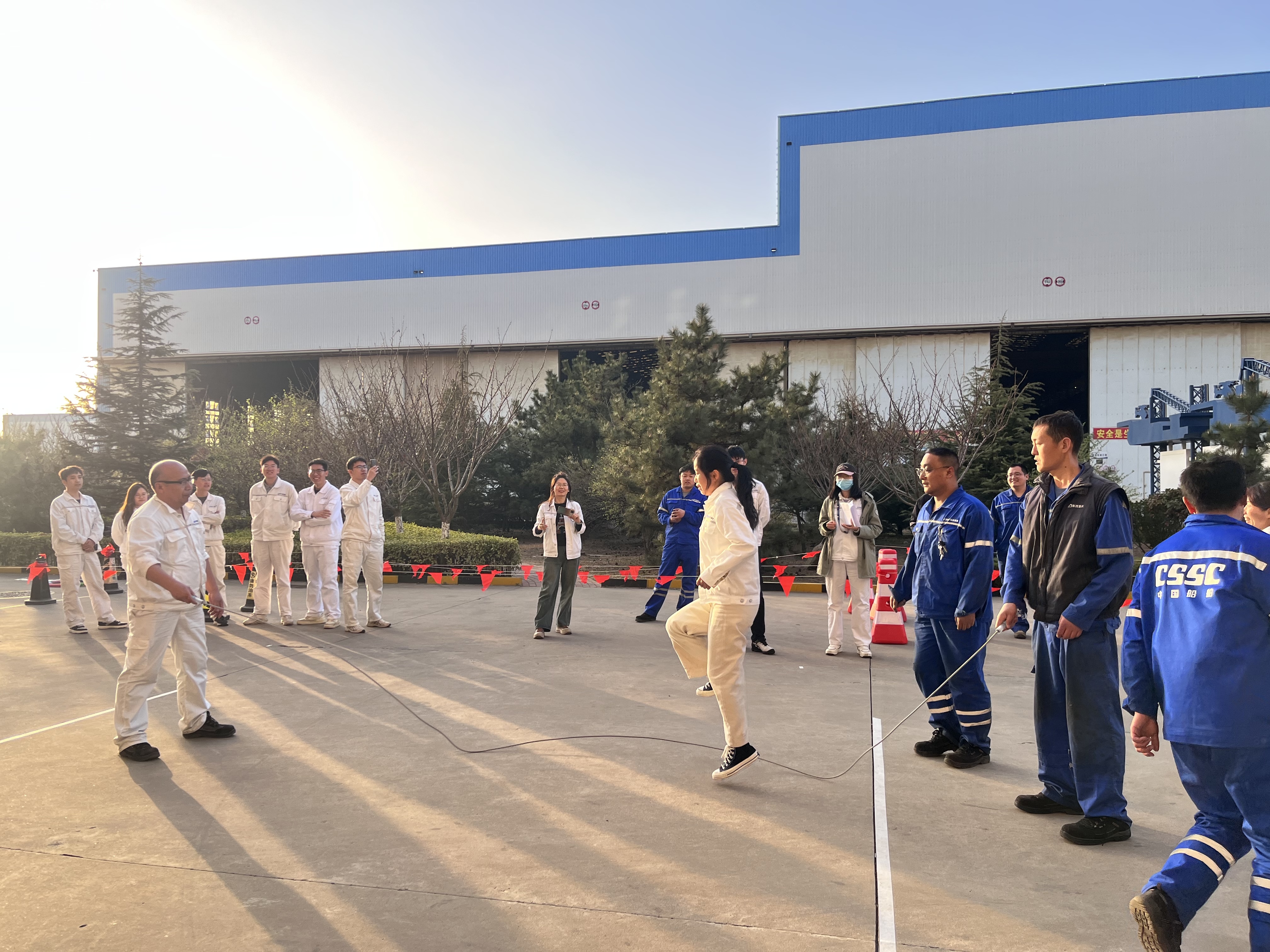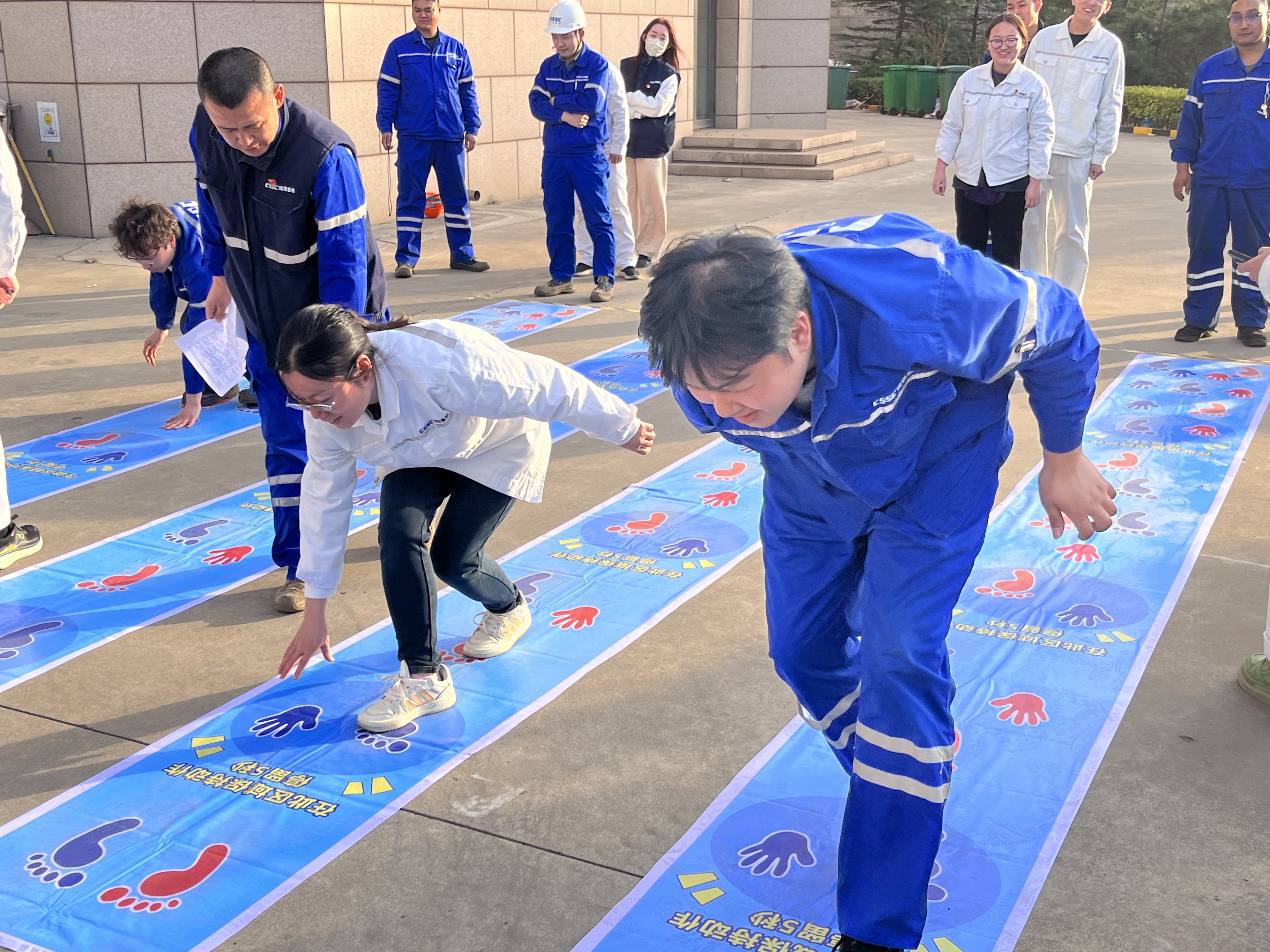 備受矚目的“巨人腳步”項目中,港口機械工程所的隊伍以口號統一步伐,如“鋼鐵巨人”般穩步?jīng)_向終點(diǎn),展現了驚人的默契?!凹w跳長(cháng)繩”更是高潮迭起,跳繩隊員的靈活身姿與搖繩者的精準節奏相得益彰,最后品質(zhì)管理部以3分鐘完成102次的佳績(jì)摘得單項冠軍。技術(shù)中心分會(huì )的謝士嬌在“摸石過(guò)河”中表現搶眼,她巧妙鋪磚、輕盈跨步,為團隊節省關(guān)鍵時(shí)間?!拔覀兣驴墒恰畱鹦g(shù)擔當’!”她賽后笑稱(chēng)。