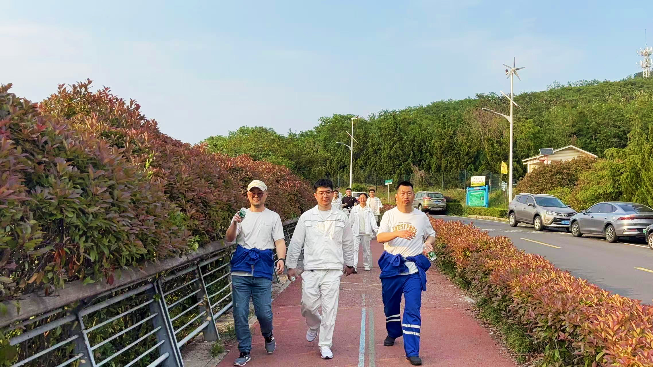 初夏的海風(fēng)輕拂,環(huán)島路綠意盎然。下午16:30,身著(zhù)統一服裝的職工們齊聚一號門(mén),隨著(zhù)出發(fā)指令響起,健步隊伍沿6公里環(huán)線(xiàn)闊步前行。碧海藍天間,既有你追我趕的競技風(fēng)采,也有并肩攜手的溫馨畫(huà)面,歡聲笑語(yǔ)與濤聲相和,構成一道流動(dòng)的企業(yè)文化風(fēng)景線(xiàn)。