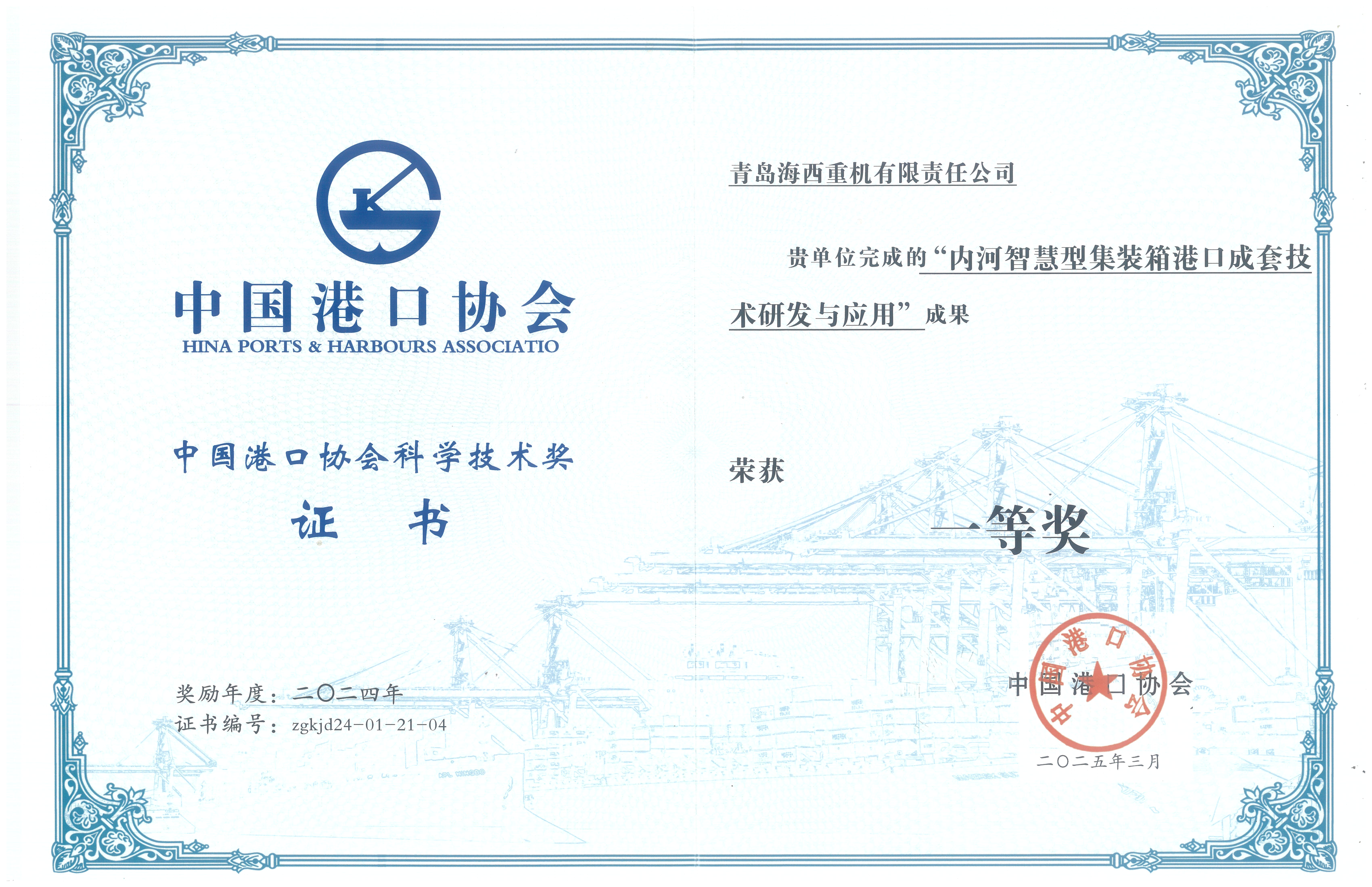 近日,由海西重機深度參與并共同申報的技術(shù)成果——龍拱港《內河智慧型集裝箱港口成套技術(shù)研發(fā)與應用》項目榮獲科技部和國家獎勵辦公室共同批準設立的2024年度“中國港口協(xié)會(huì )科學(xué)技術(shù)獎”科技進(jìn)步一等獎。項目實(shí)施方龍拱港成為了江北內河首個(gè)獲得中國港口協(xié)會(huì )科學(xué)技術(shù)一等獎的港口,這一突破標志著(zhù)海西重機在智慧港口領(lǐng)域的技術(shù)創(chuàng )新與系統集成能力再獲國家認可。