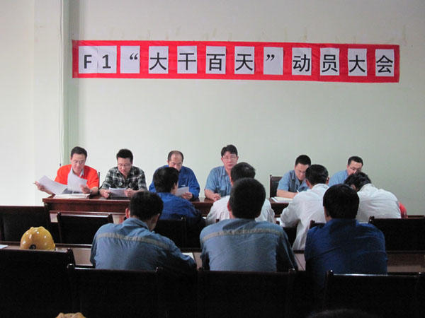 為確保公司重點(diǎn)產(chǎn)品3690噸浮吊(F1)項目結構件制作的順利完成,生產(chǎn)黨支部與品質(zhì)黨支部聯(lián)合組織了F1項目“百日大干”勞動(dòng)競賽。并于2012年6月29日召開(kāi)競賽動(dòng)員大會(huì ),詳細布置了競賽活動(dòng)。