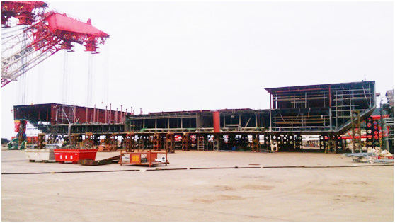 90米平臺船頭船尾的順利貫通是整船建造過(guò)程中的一個(gè)重要節點(diǎn),標志著(zhù)整船工作重心從結構件分段制作順利過(guò)渡到船臺整體搭載,為該平臺如期順利下水奠定了基礎。