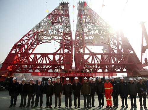 12月30日,由海西重機研制的3600噸大型浮吊交付暨列編儀式在公司碼頭隆重舉行,煙臺打撈局局長(cháng)杜檸、CCS、公司董事長(cháng)何紀武等領(lǐng)導出席了會(huì )議,標志著(zhù)3600噸浮吊經(jīng)過(guò)近兩年的制造正式交付并列編交通運輸部煙臺打撈局。