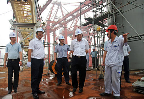 7月15日,中船重工副總經(jīng)理董強深入海西重機生產(chǎn)現場(chǎng),查看了在制的90米自升式海洋平臺項目、為海南洋浦批量研制的岸橋、輪胎吊項目以及出口意大利的超巴拿馬岸橋(60t-62m岸橋)項目等,并就產(chǎn)品種類(lèi)調整實(shí)效、安全生產(chǎn)責任制落實(shí)等與各級干部進(jìn)行交流,提出了指導意見(jiàn)。