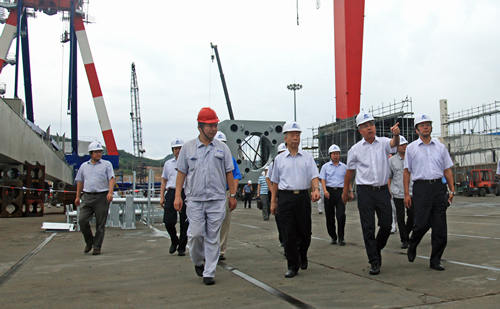 李長(cháng)印一行實(shí)地考察了青島海西重機生產(chǎn)現場(chǎng),查看了公司在制的90米自升式海洋平臺、海南洋浦批量岸橋及意大利超巴拿馬岸橋等公司關(guān)重項目,聽(tīng)取了公司董事長(cháng)何紀武關(guān)于產(chǎn)品生產(chǎn)、市場(chǎng)經(jīng)營(yíng)、企業(yè)發(fā)展等方面的匯報,對海西重機強化創(chuàng )新、調整企業(yè)發(fā)展定位取得的成效給予了肯定。